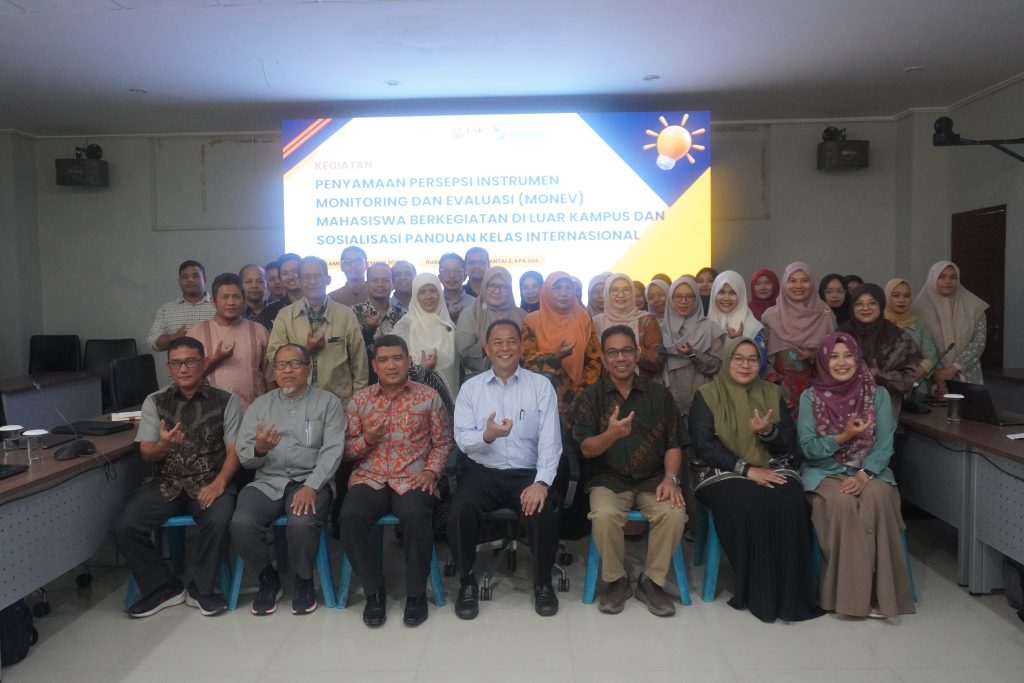 20 November 2025, Direktorat Pendidikan dan Pembelajaran Universitas Syiah Kuala (USK) mengadakan pertemuan penyamaan persepsi instrumen Monitoring dan Evaluasi (Monev) mahasiswa berkegiatan di luar kampus sekaligus sosialisasi panduan kelas internasional bersama para Ketua Program Studi. Kegiatan ini dibuka oleh Wakil Rektor Bidang Akademik, Prof. Dr. Ir. Agussabti, M.Si., IPU., ASEAN Eng, yang menekankan pentingnya masukan dari program studi untuk menghasilkan instrumen Monev yang lebih baik dan seragam di seluruh fakultas. Ia juga menyampaikan bahwa tahun ini USK untuk pertama kalinya berhasil meraih peringkat 962 dalam pemeringkatan SDGs, sebagai hasil kerja sama seluruh pihak, dan berharap capaian tersebut terus meningkat di masa mendatang.